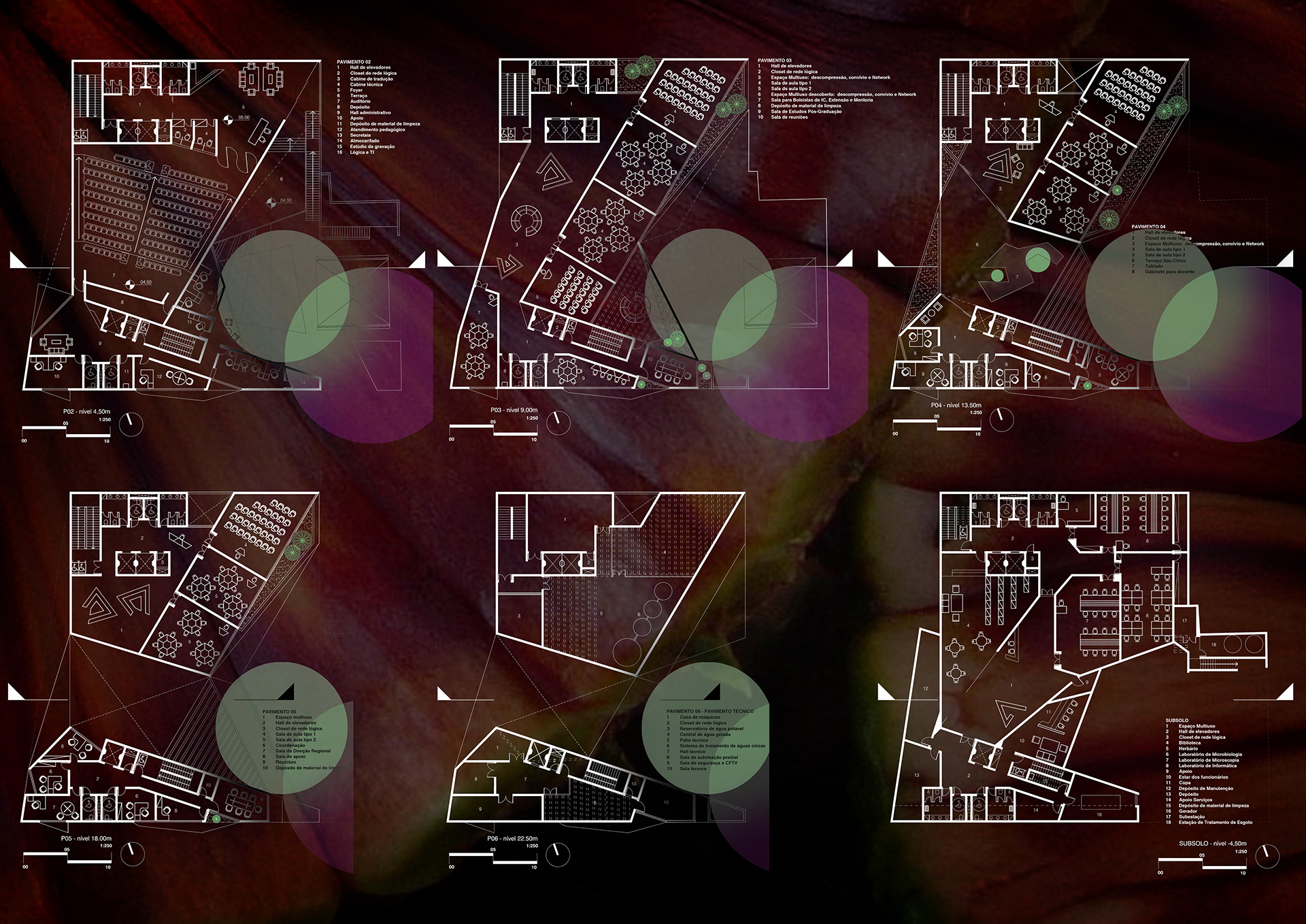 A pandemia do SARS-CoV-2 e a resposta tecnológica dada a ela no âmbito educacional também atuaram na conformação dos ambientes de ensino. Para além das exigências de programa, que já delineava a necessidade de um estúdio de gravação de conteúdo audiovisual, a proposta traz também um espaço multiuso descoberto, que proporciona alternativa ao ambiente comum a esse tipo de atividade por permitir que as produções possam ocorrer também a céu aberto, em uma conexão maior com a temática de muitos dos cursos iniciais da UERGS – Unidade Hortênsias.