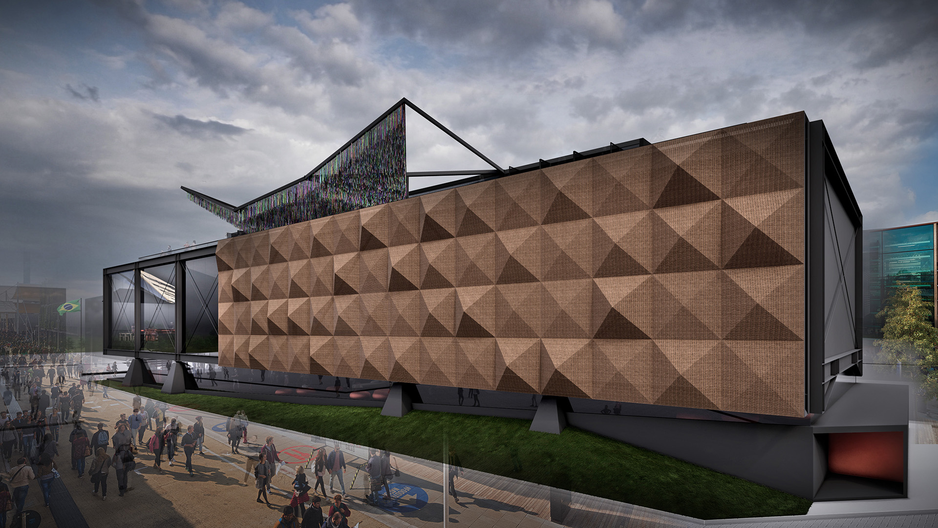 No acesso ao piso superior do pavilhão, apresenta-se o eixo Brasileiros – O Poder da Brasilidade em duas grandes janelas piramidais, com projeções de imagens que procuram conformar uma etnia brasileira ao abordar essas matrizes na arquitetura, gastronomia, música, festas populares, costumes, religiosidade e esportes. Visitantes interessados em entretenimento, alimentação e compras encontram ao término desse circuito uma experiência específica na instalação de milhares de fitilhos de tecido coloridos em alusão a representativas expressões da cultura popular, além do acesso ao café, à loja e ao restaurante do pavilhão.